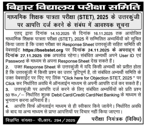 Bihar STET Answer Key 2025 में Objection कैसे दर्ज करें?