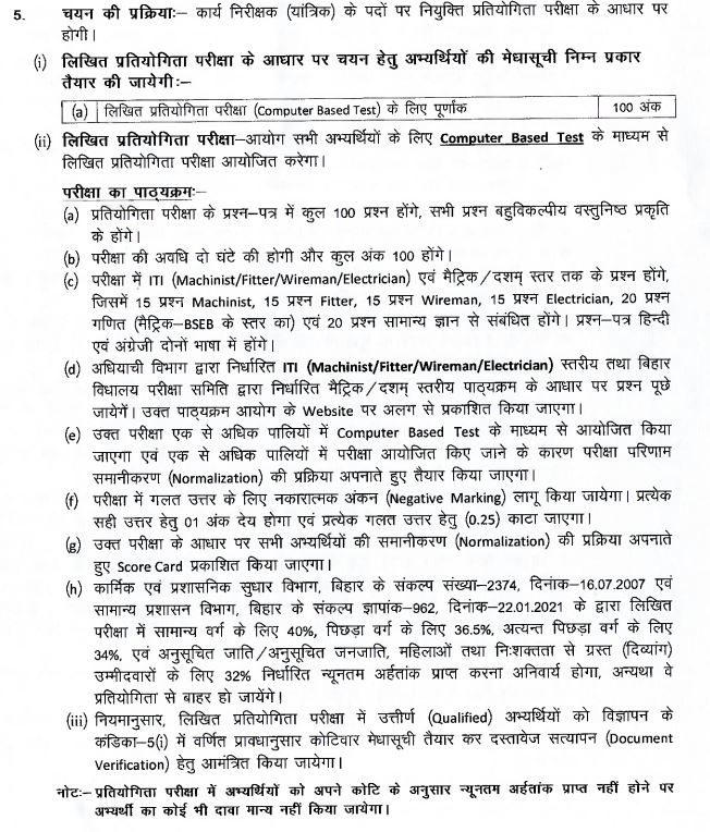 BTSC Work Inspector Mechanical भर्ती 2026 में चयन निम्न चरणों में होगा: