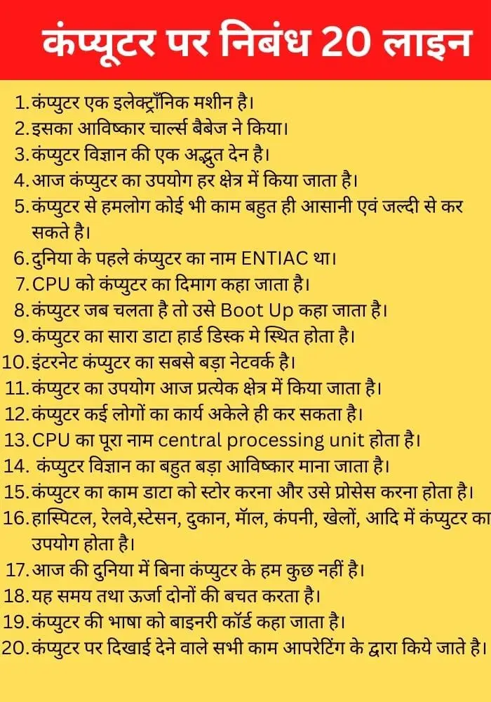 कंप्यूटर पर निबंध 20 लाइन