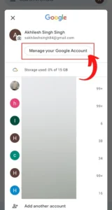 Step-3. इसके बाद आपके Email id के नीचे Manage your Google Account के ऑप्शन पर क्लिक करना है।