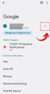 Step-3. इसके बाद अब आपके सामने जो जीमेल आईडी दिखाई दे रही है उसके सामने Arrow के आइकॉन पर क्लिक करे।