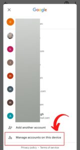 Step-5. इसके बाद आपके जीमेल के सामने आपके फोन में जितनी भी जीमेल आईडी होगी सभी दिखाई देगी आपको जिस जीमेल अकाउंट को अपने फोन से हटाना है उसे अकाउंट को चुने।