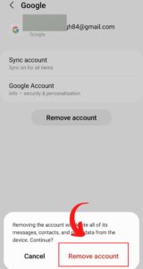 Step-6. फिर Remove account के ऑप्शन पर क्लिक करे।