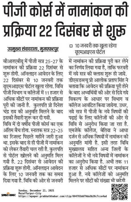 - सत्र 2025-26 में प्रोफेशनल ग्रेजुएशन कोर्स के पहले वर्ष में प्रवेश