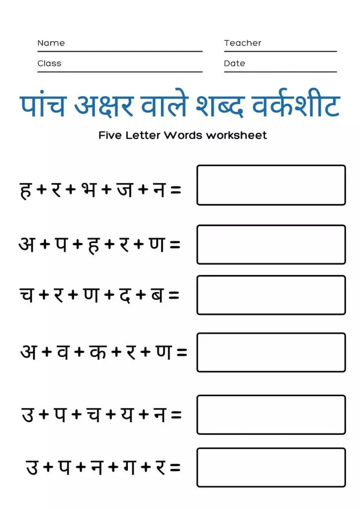 पांच अक्षर वाले शब्द वर्कशीट के साथ निचे दिया गया। इसे आप डाउनलोड के बटन पर क्लिक करके आसानी से अपने फोन में सेव कर सकते है।