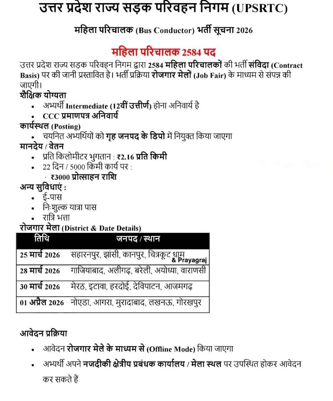 आवेदन ऑनलाइन नहीं, बल्कि रोजगार मेले में जाकर ऑफलाइन करना होगा।